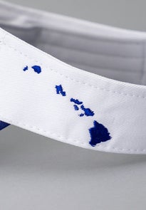 アロハスタンダードの「オリジナル・ロゴ」をフロント部分に、3D(立体)刺繍で仕上げたバイザーです。 「ハワイ8島」や「オリジナルデザインのホヌやハワイアンキルト」の刺繍も施してあります。