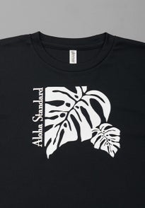 Aloha Standardのオリジナルの大きなモンステラ&縦の文字ロゴをメインにプリント。 後方には5行のハワイアン・ポエム、ハワイ8島をプリントした ドライTシャツです。