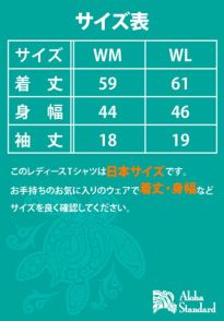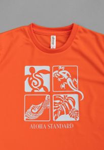 Aloha Standardのオリジナルの「ホヌ」「ゲッコー」「ハワイアンフック」「モンステラ」の4種類のLOGOをメインに表現したレディースドライTシャツです。